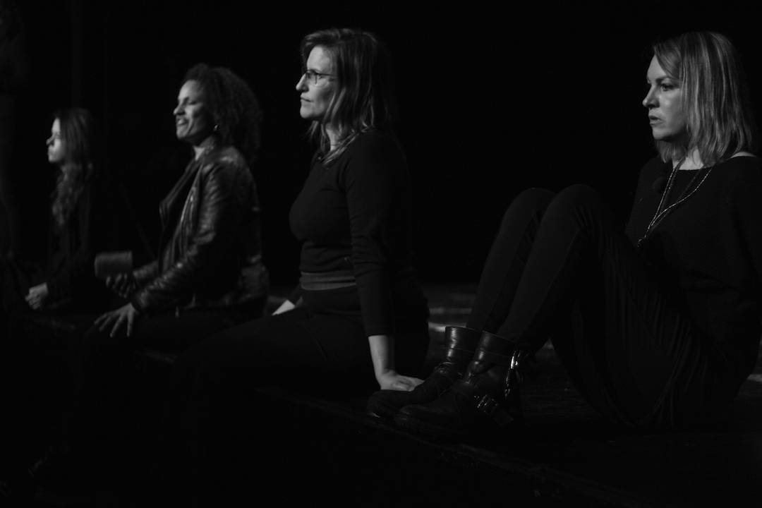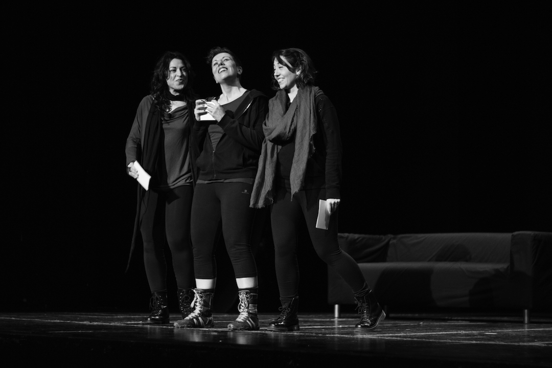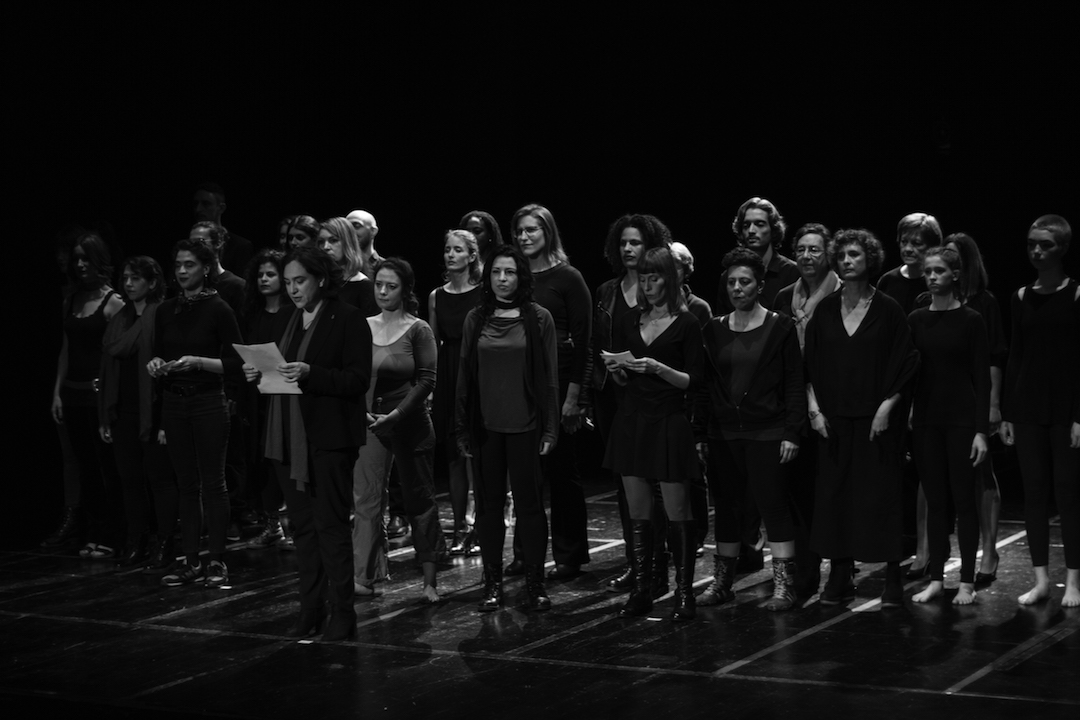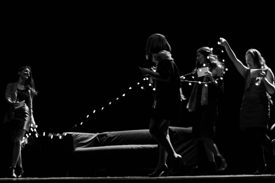 Las palabras de la creadora del V-Day, Eve Ensler, cobran vida en Mi revolución empieza en el cuerpo, un triángulo de mujeres habla de la fuerza que tienen, de la necesidad de activismo, del poder intrínseco en cada una. El triángulo crece formando una masa de personas, mostrando cuántos se necesitan para una lucha guiada por el “amor” -con esta palabra cierra la obra, y resuena durante los aplausos.