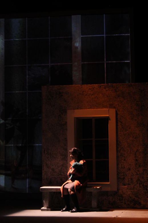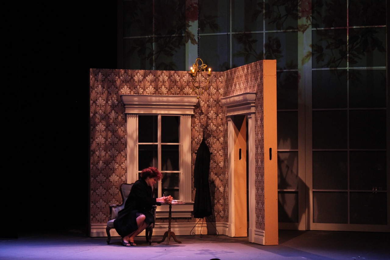 La asistente Sthefany Marquina se engalana con una chalequito blanco y sale a las tablas a representar, en silencio, a una joven que cuida de Piaf en sus últimos años de dolencias y sufrimiento. Luego, fuera de la mirada de los espectadores, retorna al vestuario enteramente negro y se oculta tras uno de los cubos que engrana la escenografía ― el decorado de cada lado determina el contexto: habitación, cabaret y camerino― para moverlo junto con sus compañeros según indica la pauta de la pieza.
